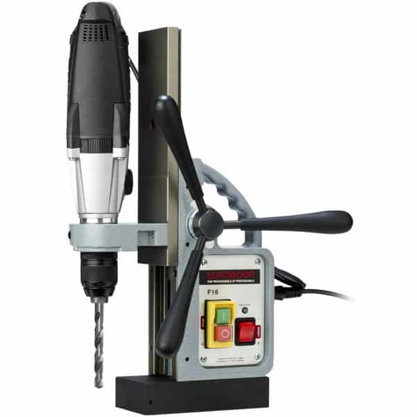 Euroboor F16 is a universal, flexible drilling stand with an integrated power socket. This stand is designed for handheld drills with twist drill diameters up to Ø 16 mm. The F16 universal drill stand allows for drilling, enlarging, and countersinking holes while ensuring high stability. A powerful 1,200 kg magnet provides strong holding force during operation. The F16 is an excellent solution for high-precision small-diameter drilling tasks.