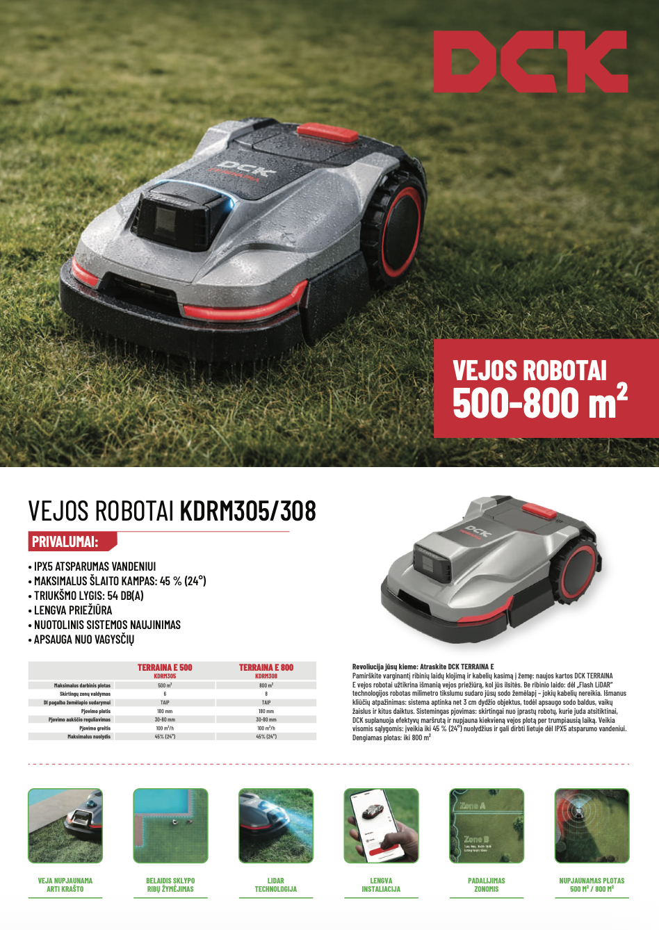 Robotas - žoliapjovė TERRAINA E 500 m², be laido KDRM305, DCK