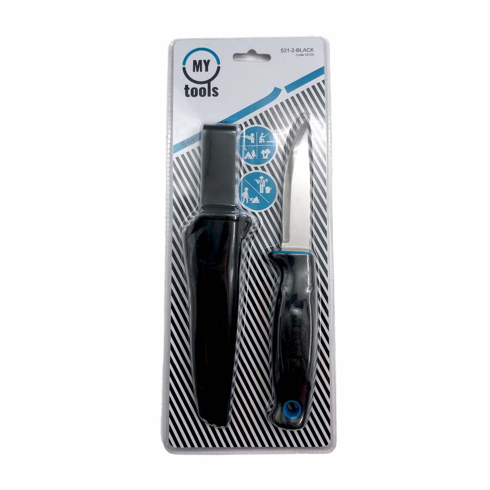Priekšrocības: MY TOOLS nazis ir izgatavots no izturīga nerūsējošā tērauda Komplektā ietilpst naža jostas stiprinājums Ērts gumijots rokturis stingram satvērienam Nerūsējošais tērauds 5Cr15MOV Izmēri: asmeņa garums 100 mm Asmeņa biezums 2,5 mm Asmeņa garums 225 mm