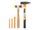 Semi-case. Tinsmith's hammer 30 mm, ordinary hammer with a wooden handle 500 g. 3 chisels.